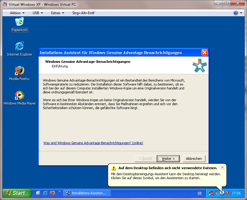 Zeitgleich mit der RC1 erschien auch eine neue Version von Microsoft Virtual PC.