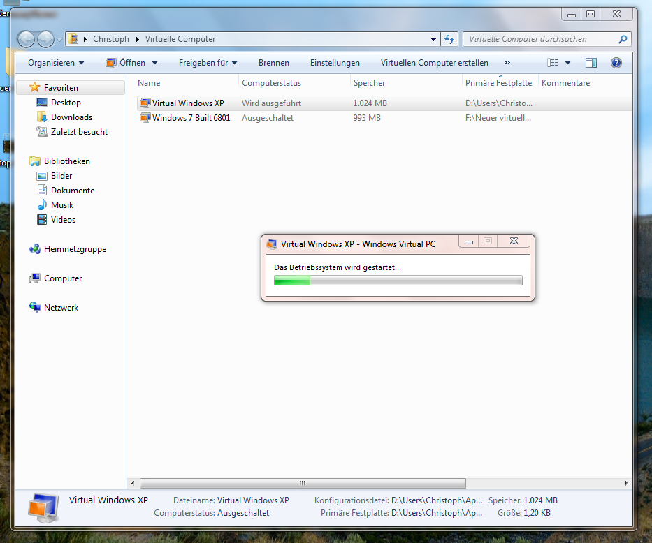 Von der Oberfläche her ist Microsoft Virtual PC in Windows 7 kein eigenes Programm. Die virtuellen Computer lassen sich über den Explorer aus starten und verwalten.